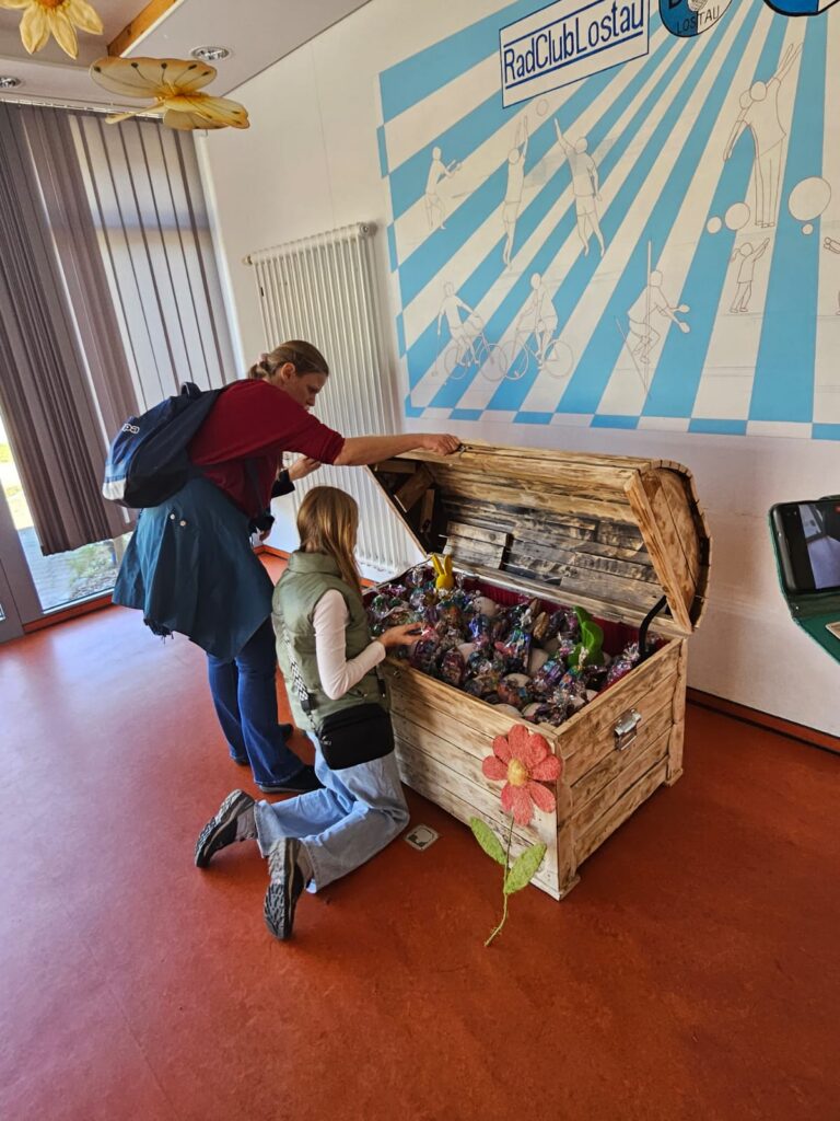 Die Mitglieder der im Verein Bürger für Bürger Möser e. V. (BfB Möser) für die allgemeine Vereinsarbeit zuständigen Abteilung konnten in diesem Jahr mit Großem aufwarten. Groß waren nämlich die hölzernen Schatztruhen, die am Vereinsheim der Turn- und Sportgemeinschaft „grün-weiß“ Möser und in der Sporthalle Lostau auf die Kinder und Familien warteten, die erfolgreich die Rätseljagd absolviert hatten. Wurden die großen Deckel der Truhen mit dem passenden Zahlencode geöffnet, warteten reichlich Ostergeschenke, die für große Augen sorgten.
